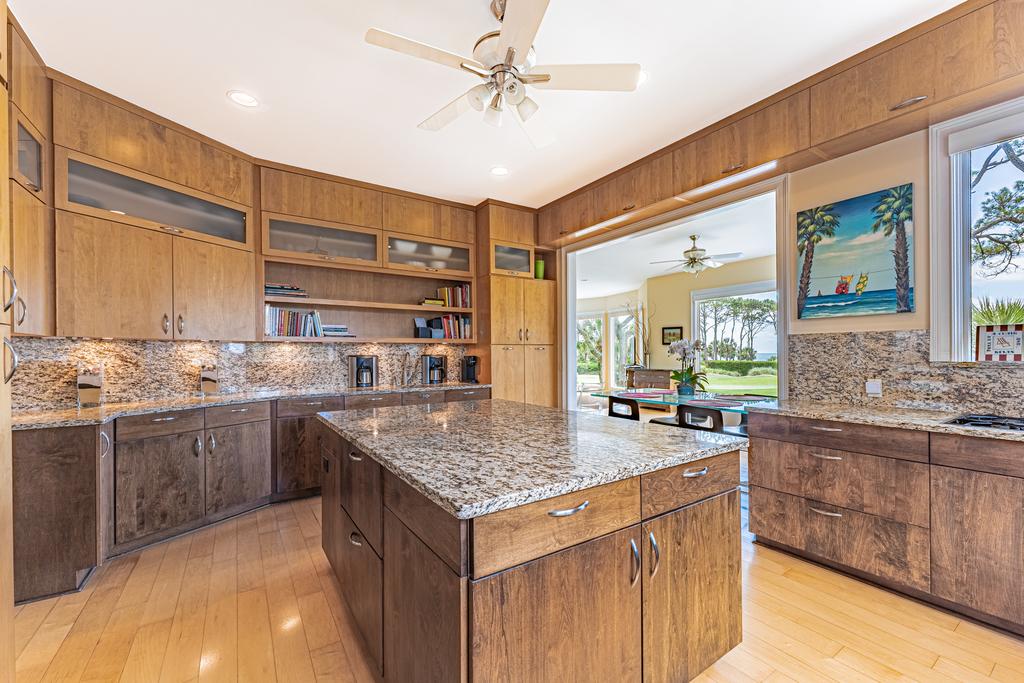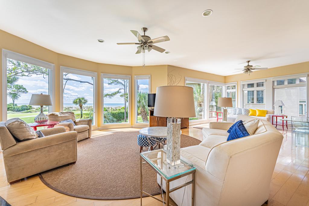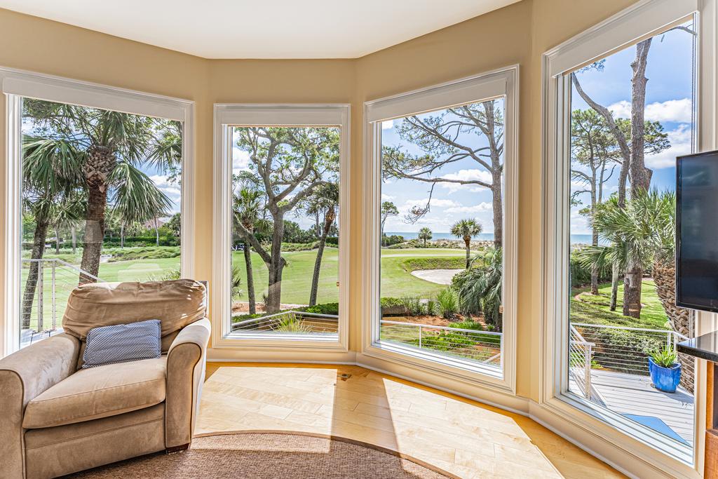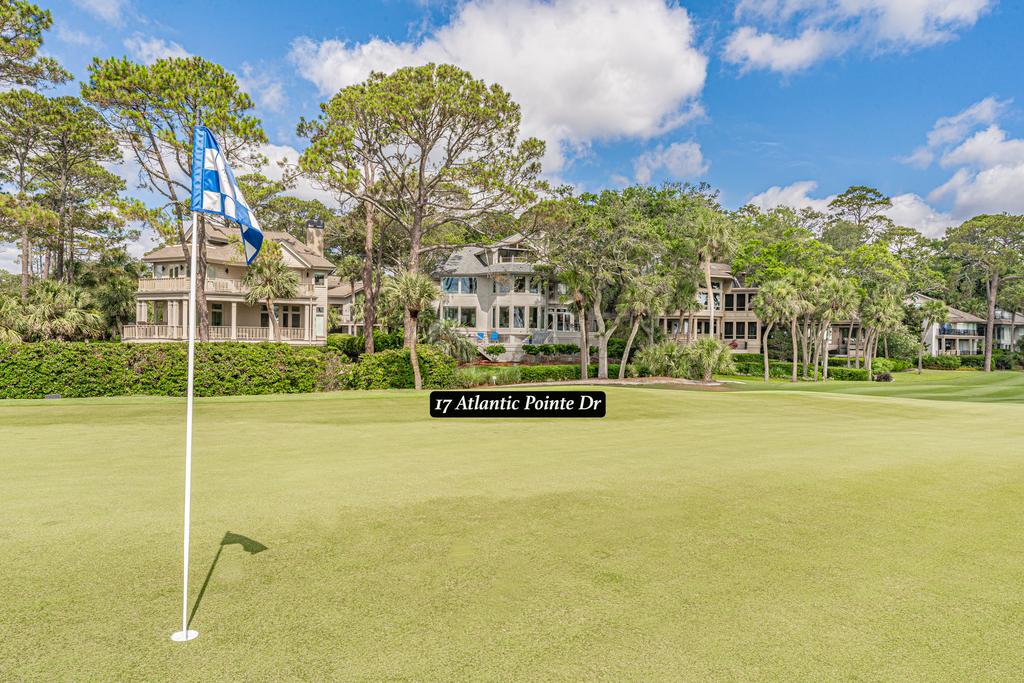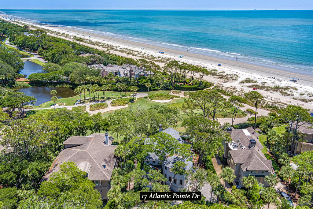 Total Renovation under way!! Spectacular location in this wonderful luxury 7 bedroom 7 bath Sea Pines Resort golf course and Atlantic Ocean Views. New Pool! Once in a lifetime location on the 15th ocean hole of the Sea Pines Resort golf course, Atlantic Dunes. Perfect spot to watch the golfers come in on the par 3 hole green with the Atlantic Ocean as the back drop. Seven bedrooms are being completely remodeled at this time with all the kitchen and baths to be completed by May of 2025. The main living floor has a huge kitchen with granite counters, stainless steel appliances and will be opened up to have a large island with bar stools. The living room and dining area have views of the golf course and Atlantic Ocean. Watch the pelicans fly and the dolphins swim from the oversize back deck. Book your dream vacation today, your family will have the perfect vacation. There is parking for four cars in the driveway and two in the garage.