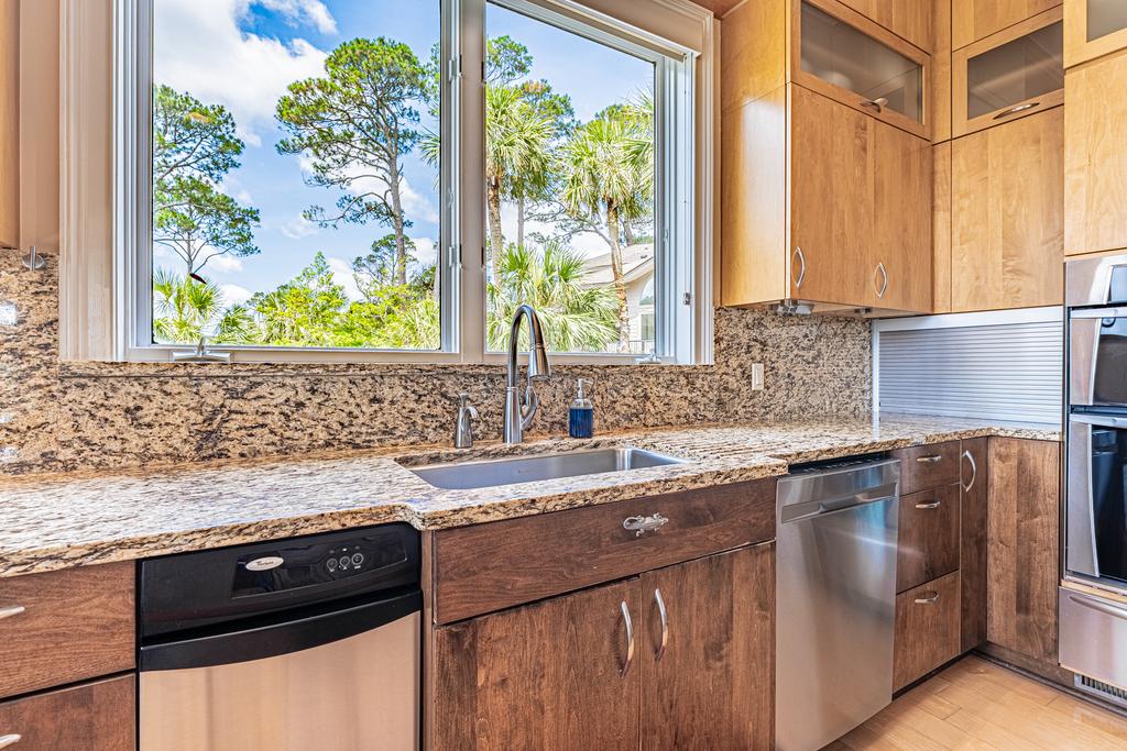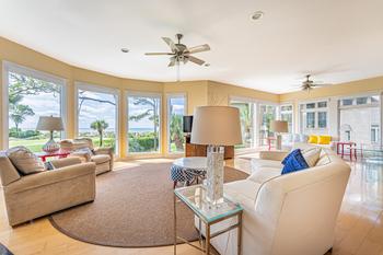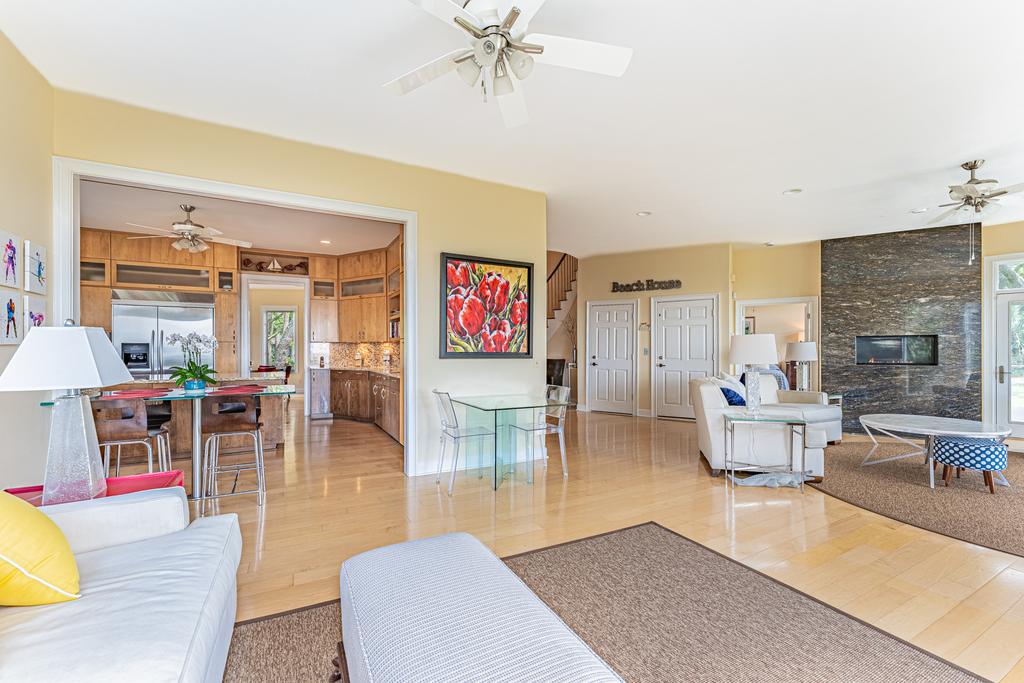 Gourmet kitchen is being completely renovated with all new cabinets, counters, appliances and will open up to have a large island with bar stools so everyone can gather at dinner time. The view will be out over the dining area and living room to the Atlantic Dunes golf course and the ocean. A large dining room table will seat eight people and the bar area will seat another six. The living room has a fabulous view with several new comfortable designer couches and large smart TV over the fireplace. You walk out to the back deck area where the new elevated pool and deck will be. The best views from the house will be from the back deck and the gorgeous pool. Enjoy grilling from the private barbeque beside the pool. Enjoy the view!!