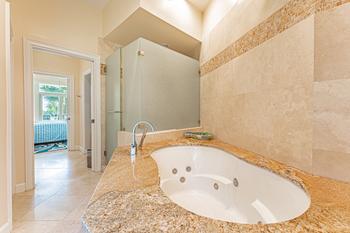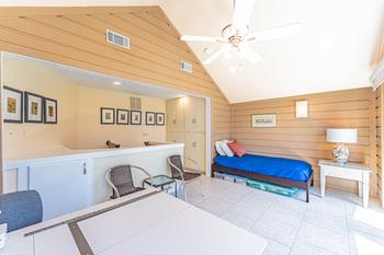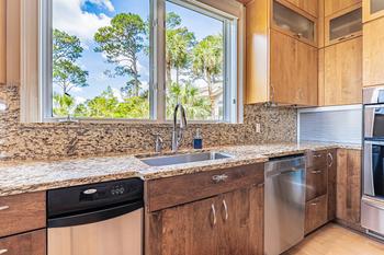 The fourth bedroom has a king size bed with a full en suite bath. The fifth bedroom has another king size bed with a full en suite bath. The kids room has two twin beds built into the wall with a double and three twins. The home continues up the winding stairs to the nice size play room for the kids that includes a large flat screen to enjoy video games and movies. There is a veranda off the room with some of the best views in the house. The home comfortably will sleep 17 people in beds. There is a laundry room on the floor with the master suite and three bedrooms. Atlantic Pointe has its own community tennis court and community pool too just a few steps down the street.