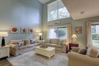 This beautifully appointed 3-bedroom, 3-bath condo is nestled in Sea Pines near the stunning Harbour Town Golf Links, offering both comfort and convenience. Your reservation includes beach gear and bike rentals. The spacious living area features high ceilings with an open layout that flows into a modern kitchen equipped with updated appliances. The master bedroom boasts a king-sized bed, an updated walk-in shower in its en-suite bath and a balcony providing a semi-private view perfect for morning coffee or evening relaxation. The additional bedroom on the second floor has a queen and a twin, a private balcony, private en-suite bath with a tub/shower combo. The first floor bedroom has a king sized bed, an en-suite bath with updated walk-in shower. All three bedrooms are well-sized, each with ample closet space and natural light. Visitors have access to a pool and free parking. With nearby access to world-class golf, dining, and picturesque beaches, this condo is an ideal getaway for vacationers and golf or tennis enthusiasts alike. From this condo, you can take the Sea Pines Trolley all over the Resort; to the Sea Pines Beach Club or go down to Salty Dog Cafe at the South Beach Marina Village. Within a short walk, you can rent bikes to ride for miles on shaded bike paths in Sea Pines or walk to the Sea Pines Tennis club. The condo comfortably sleeps seven people. Bring your favorite dog or two, you can bring up to two dogs under 60 pounds, $175 per dog or 2 for $250. Reservation includes 2 car passes to Sea Pines Resort. Your reservation includes bike rentals and beach gear. 297 Stoney Creek in Sea Pines is professionally managed and operated by Hilton Head Vacations, Inc, a locally owned company.