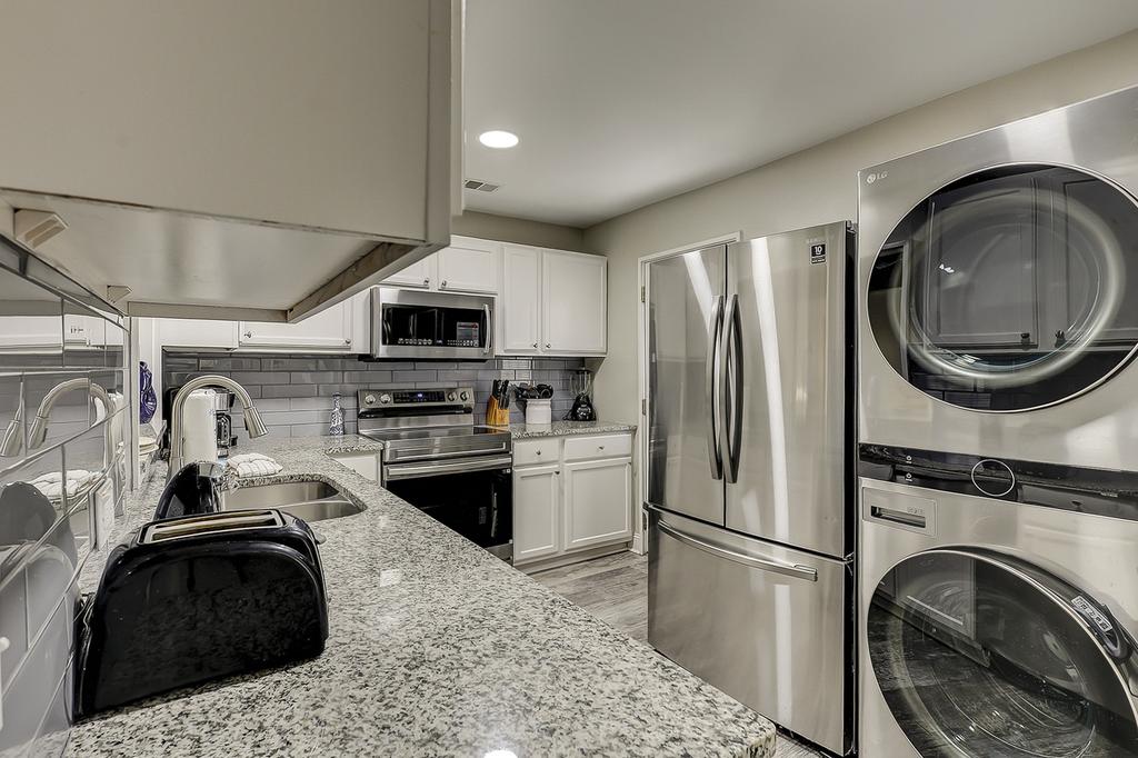 Granite countertops, stainless steel appliances