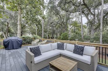 Wonderful luxury three bedroom vacation home in Sea Pines with updated new kitchens and baths. Kitchen counters are new, paint is new, furniture is new and baths have been updated also. House is tastefully decorated so you can relax and enjoy your vacation. Master bedroom has king size bed with en suite luxury master bath. Guest room has wonderful queen size bed with a new en suite full bath with walk in shower. The third bedroom has another queen bed with a twin bunk bed also with access to full bath. Great wooded views and a peak of the tennis courts and swimming pool from the back deck. Free wifi included. Free tennis and free community swimming pool. Sea Pines has over $150 million amenities to enjoy, beach, biking, golfing, tennis, restaurants and shops located all in Sea Pines Resort. Your reservation includes bike rentals and beach gear. 98 Shell Ring in Sea Pines is professionally managed and operated by Hilton Head Vacations, Inc, a locally owned company.